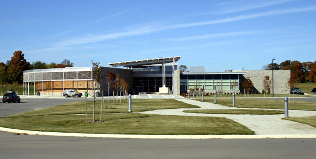 The site had been planned during the conceptual design period in order to capitalize on local trails, distant views of Georgian Bay and to accommodate special services including a stored water supply for fire fighting and ground source heating loops. The 60,000-gallon water supply tank is buried into a hillside and while designed to supply water to fire fighters and the building’s sprinkler system, it is also utilized as a heat sink for the earth energy system. The geothermal energy system is used to heat the foyer floor and the entire perimeter of the building through means of Ice Kube heat pumps that would traditionally be utilized to make ice for skating rinks.