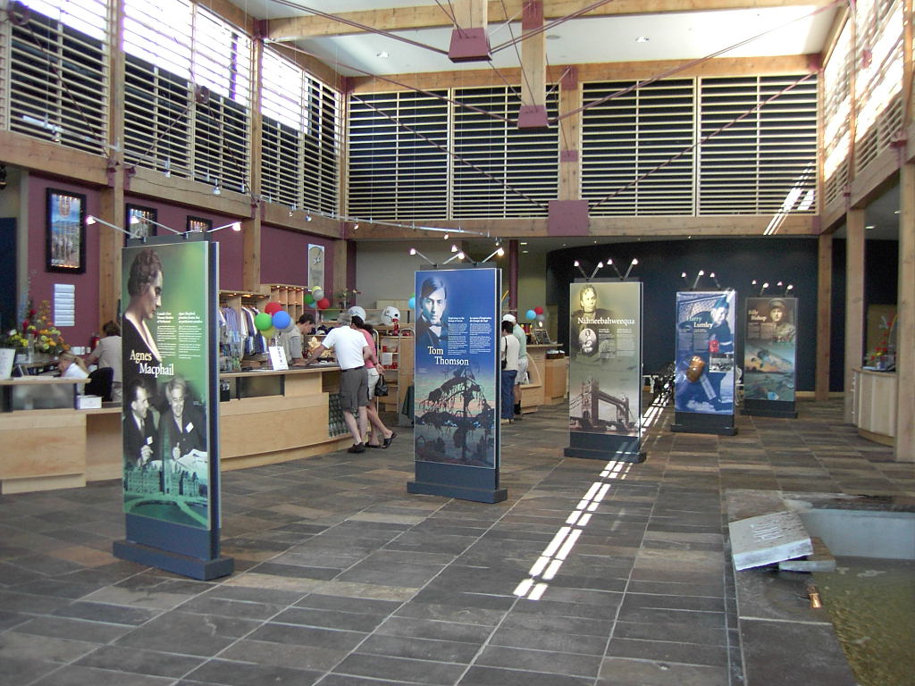 The conceptual exhibit design was developed jointly by Apropos Planning - Interpretive Planners, Design + Communication Inc. of Montreal and G. M. Diemert, Architect Inc. The architect also coordinated the installation of all of the permanent requirements for the exhibits, the theatre and the temporary exhibit rooms to ensure the precise placement of electrical and communication devices and that future expansion of these facilities can be achieved.